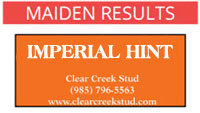 2 yo IMPERIAL CRUISER by IMPERIAL HINT wins MSW at first asking